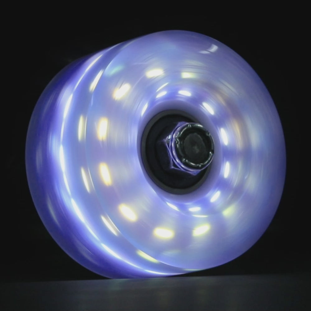 Neo BRIGHTS feature a Rainbow Glitter within a semi transparent oil slick NeoCHROME urethane with super bright White LEDs offering a multidimensional glow - you will not be missed rolling in these. BRIGHTS are not just light-up wheels, thy are a visual experience! Whether you’re lighting up the rink or rolling through the nights outside, these wheels are engineered and crafted for skating indoors or out - making these an ideal hybrid wheel.