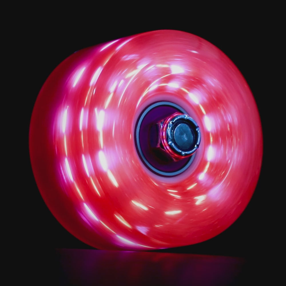 Red BRIGHTS feature a Silver Glitter within a semi transparent RED urethane with super bright Red and White LEDs offering a multidimensional glow - you will not be missed rolling in these. BRIGHTS are not just light-up wheels, thy are a visual experience! Whether you’re lighting up the rink or rolling through the nights outside, these wheels are engineered and crafted for skating indoors or out - making these an ideal hybrid wheel.