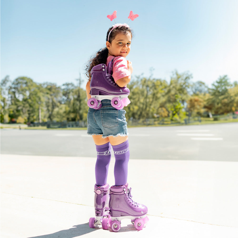 Glitter Pop Size Adjustable Roller Skate, a revolutionary game-changer that effortlessly adapts to four different shoe sizes. Say goodbye to the hassle of constantly buying new skates as your child's feet grow. With the Glitter Pop, you can provide your boy or girl with skates that will last, saving you both time and money.