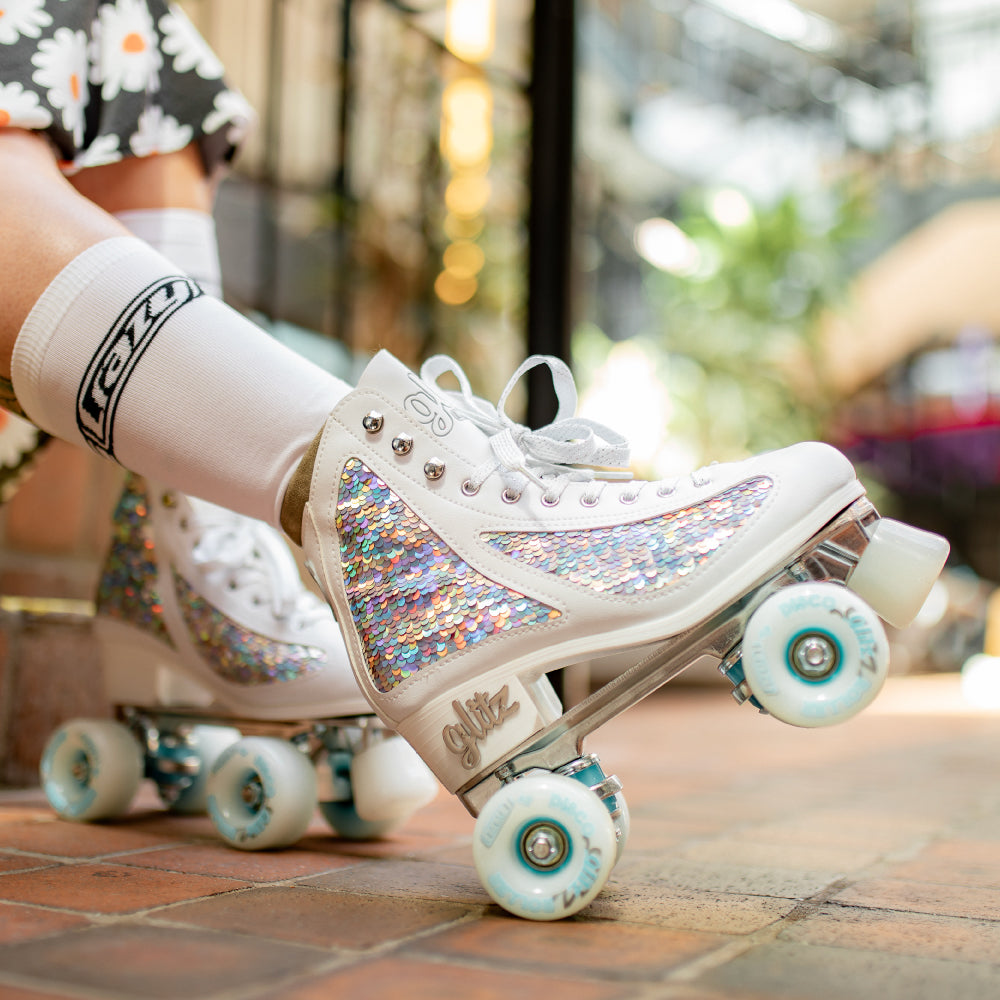 Glitz Roller Skates, where style and comfort combine to make you the star of every show. These high-white retro-style boots are adorned with stunning sequin panels that shimmer and sparkle in a Amethyst two-toned design, making them the ultimate show-stopping wheels. The padded collars and thick comfort lining provide exceptional cushioning and support, ensuring you can skate for hours in complete ease and comfort.