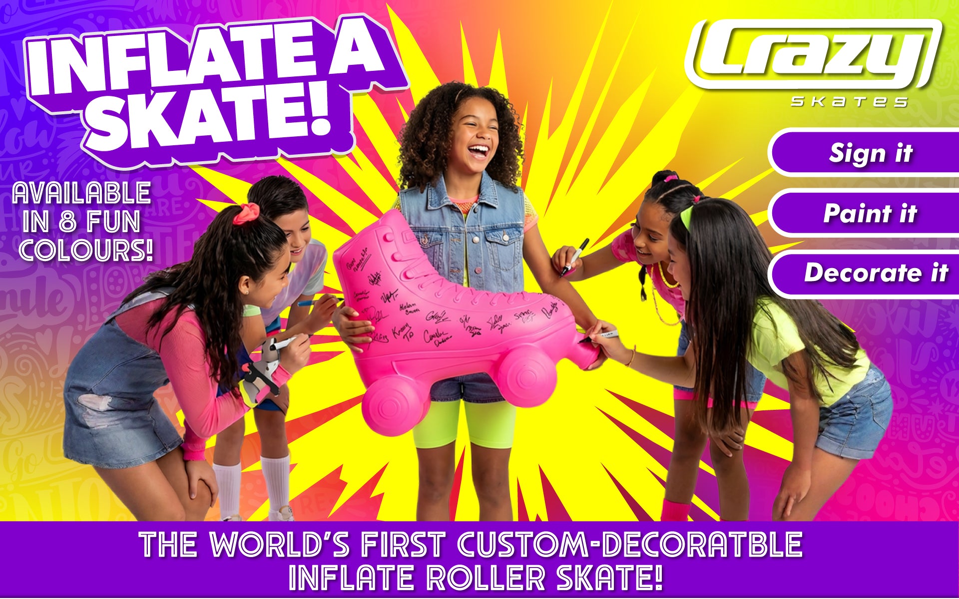 You can PAINT or BEDAZZLE your larger than life INFLATE-A-SKATE and make it a truly spectacular centerpiece in your home or business.