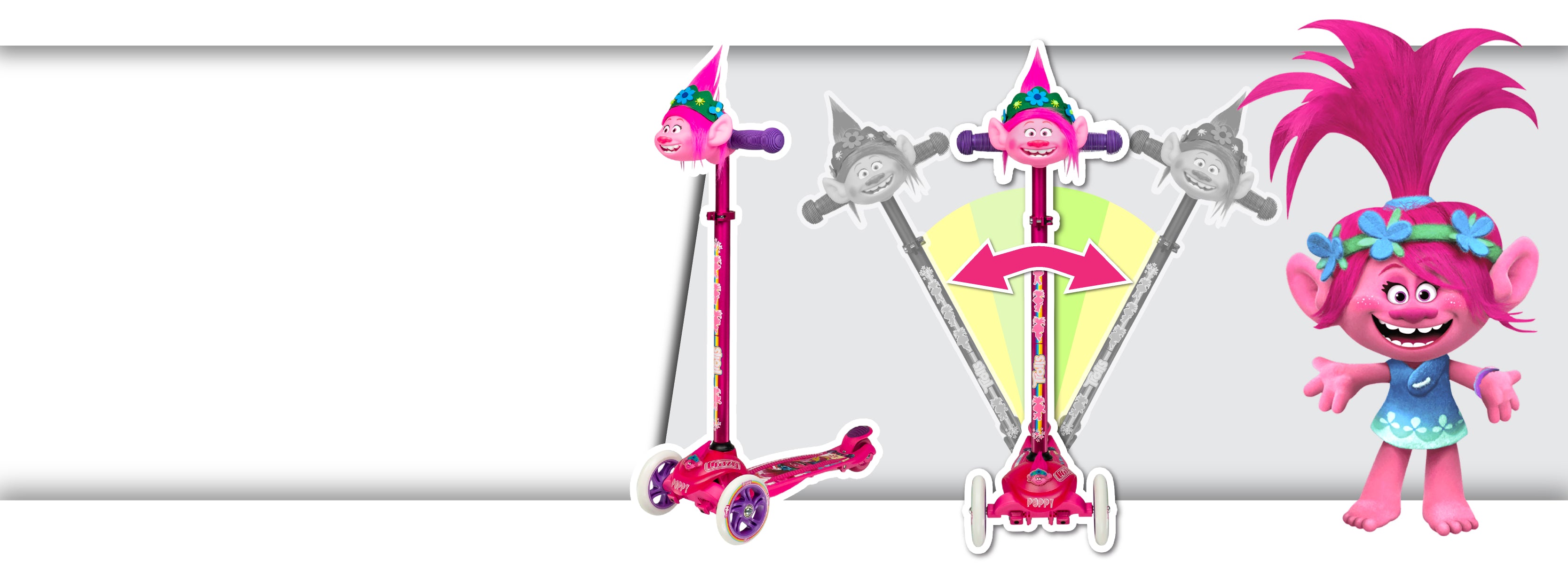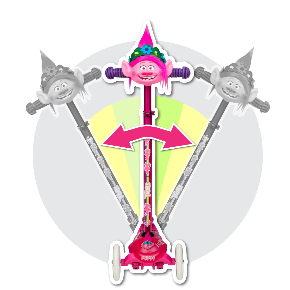 The Trolls Scooter has an adjustable turning radius, ideal for helping young riders develop balance and steering skills.