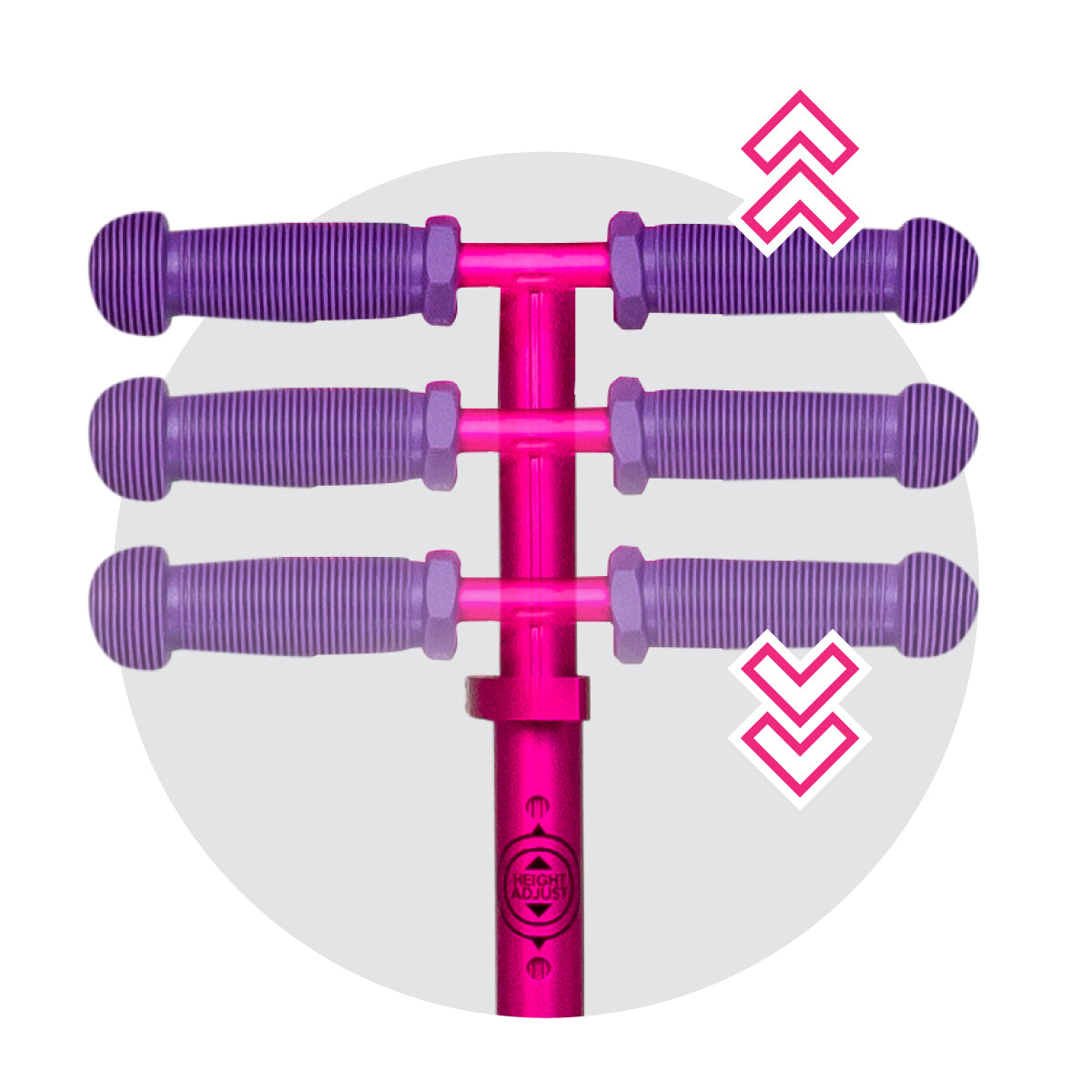 The handlebar height is easily adjustable to grow with the child, ensuring a comfortable ride as they get taller. This makes the scooter usable for multiple years.