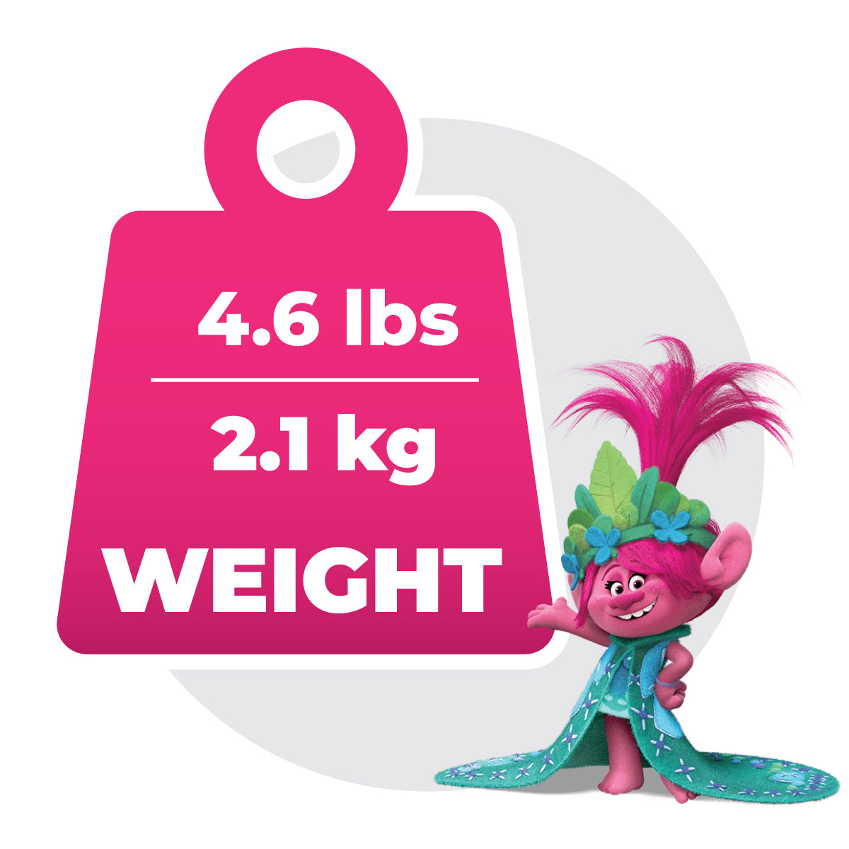 The Trolls Scooter features a lightweight, compact design at just 2.1 kg (4.6 lbs)—easy for kids to carry and parents to pack away.